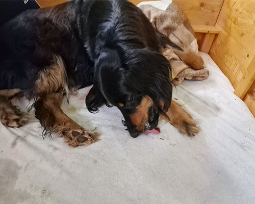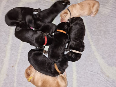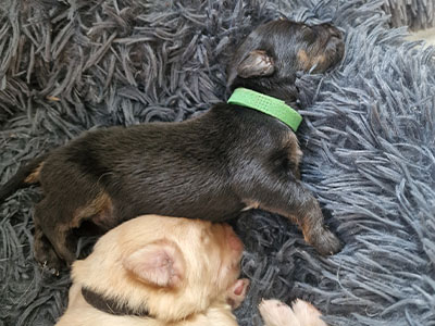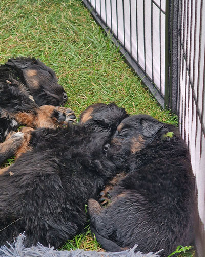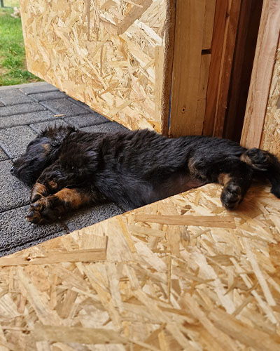 Alle Welpen sind nach der Autofahrt und der Impfung erstmal richtig platt. Jetzt wird erstmal im Welpenhaus geschlafen.